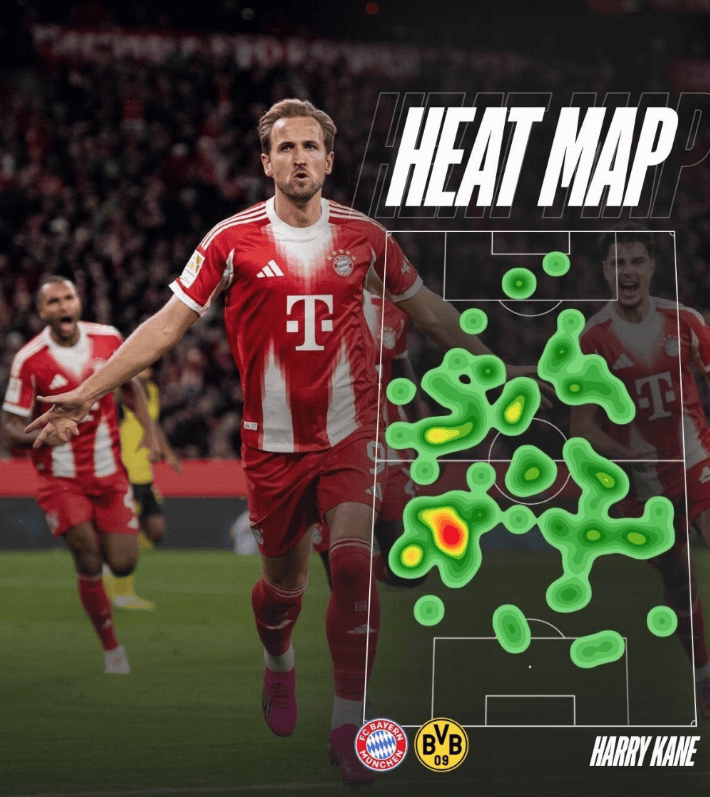 其中11次长传成功更是令人对他的场上位置心生怀疑。事实上如果你看到凯恩本场比赛的热区图的话,的确是会产生这样的怀疑,他基本上是以一个后腰球员的身份和数据在踢球。