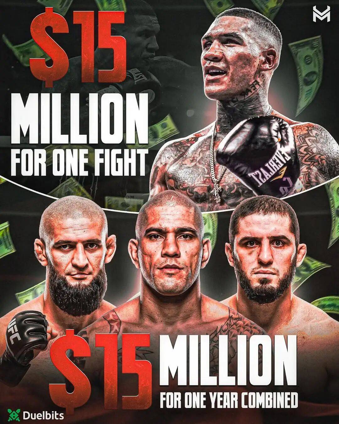 康纳-本恩与白大拿签署了一份1500万美元协议,他将获得与马哈切夫、佩雷拉、奇马耶夫去年总和相同的收入。这太疯狂了,因为本恩的吸引力甚至不及佩雷拉或马哈切夫的一半。