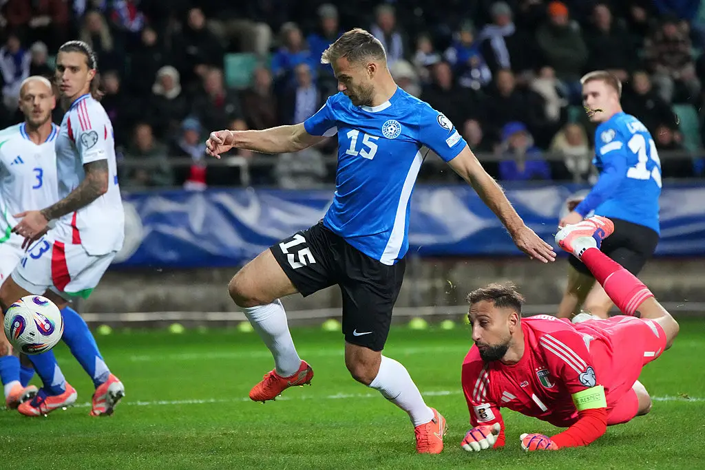 第76分钟,爱沙尼亚左路传中,多纳鲁马出击准备没收球权,结果出现黄油手重大失误,萨皮宁门前轻松将球捅入球门,爱沙尼亚1-3。