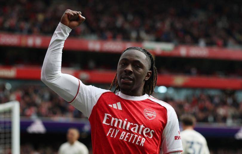 下半场,变成了埃泽的个人表演时间。 他先是在第55分钟,接应特罗萨德的传中,抢点破门,将比分扩大为3比0。 比赛似乎失去了悬念。 但好戏还在后头。 第68分钟,埃泽在禁区前沿得球,晃开角度后一脚低射,皮球再次钻入死角。 帽子戏法! 整个球场陷入了疯狂。 这是阿森纳队史第23位在英超上演帽子戏法的球员。
