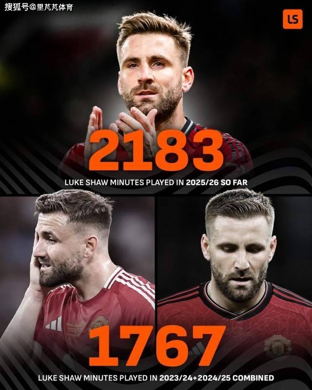 曼联近期表现出色,左后卫卢克·肖的状态稳定是关键因素之一。数据显示,肖本赛季至今的出场时间已达到2183分钟。而由于伤病困扰,他在此前两个赛季(2023-24及2024-25赛季)的总出场时间仅为1767分钟。本赛季健康的他已成为球队主力人选。