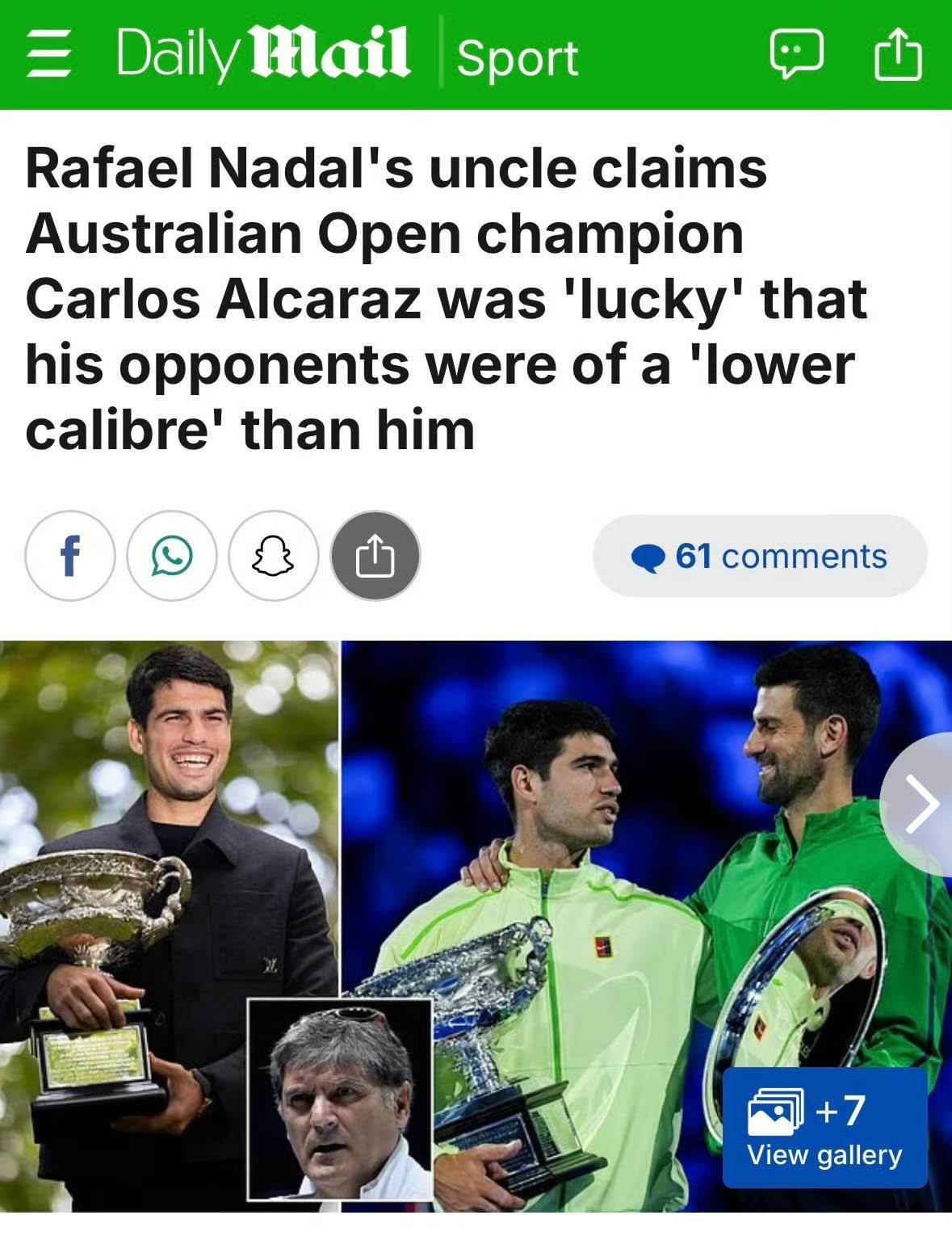 托尼叔叔的这番发言迅速引发了网球圈内外的广泛讨论。