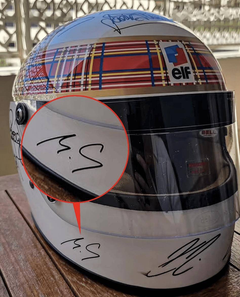 去年4月,3届F1冠军、英国车手杰基·斯图尔特主导的一个失智症公益活动上,他戴着的头盔上,赫然出现了舒马赫“MS”的签名。